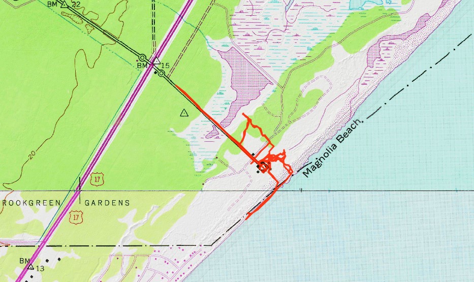 Huntington Beach State Park. Today was the kite festival so it was a good thing we arrived early. The kites were being set up as we headed out to the beach.
